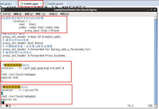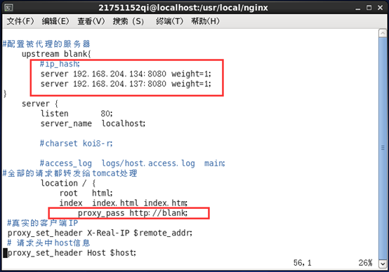 这四台服务器的作用分别是:其中一台nginx作为主服务器,另一台nginx_bk作为备用服务器,然后两台安装tomcat的虚拟机作为调度服务器。