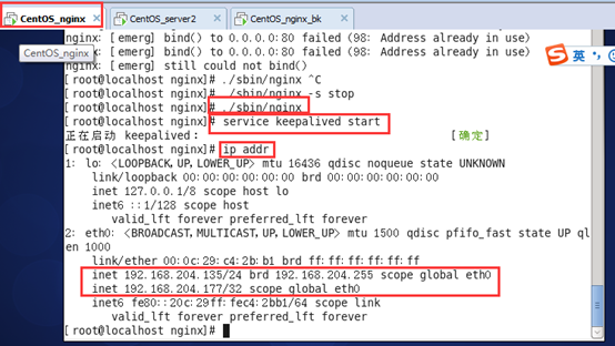 这时再把nginx主机上的keepalive重新启动,同时关闭nginx_bk主机上的nginx服务