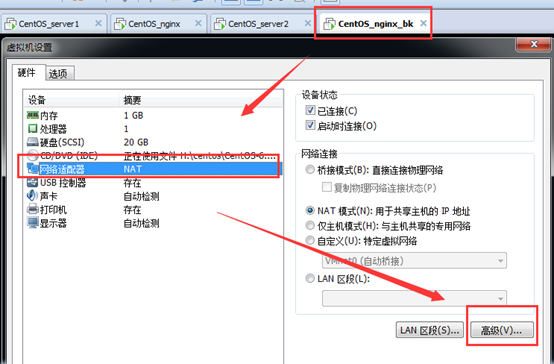 然后选中该虚拟机点击“设置”,选择“网络适配器”,“高级”