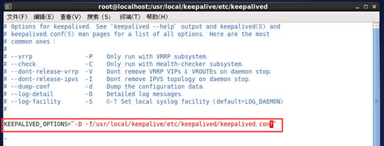 修改/usr/local/keepalive/etc/sysconfig/keepalived文件,修改正确的启动参数