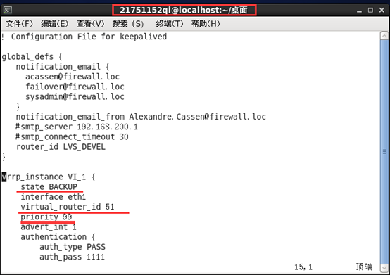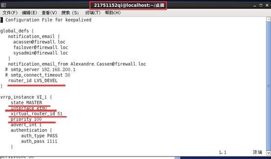 编辑ngin服务器的keepalived.conf文件,keepalived.conf文件如下图所示: