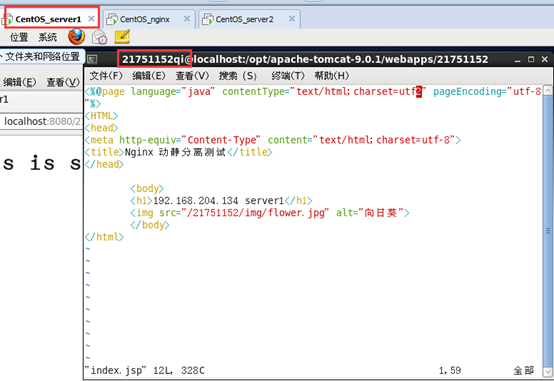 在server1这台服务器webapp/21751152目录下建index.jsp文件:
