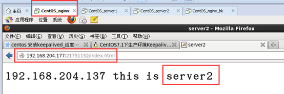 然后此时把nginx_bk这台主机上的nginx服务启动,发现在浏览器上访问vip地址时也顺利转发到了两台tomcat服务器上。