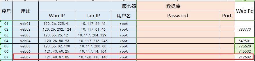 3、使用execl 表格将新增服务器信息备注好(IP<wan/lan>、账号密码以及web连接密码)