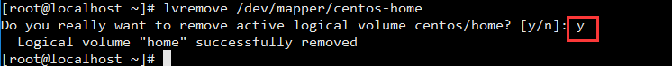 lvremove /dev/mapper/centos-home