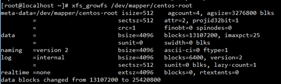 xfs_growfs /dev/mapper/centos-root