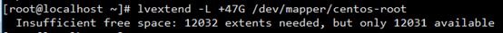 lvextend -L +47G /dev/mapper/centos-root