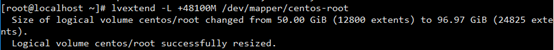 lvextend -L +48100M /dev/mapper/centos-root