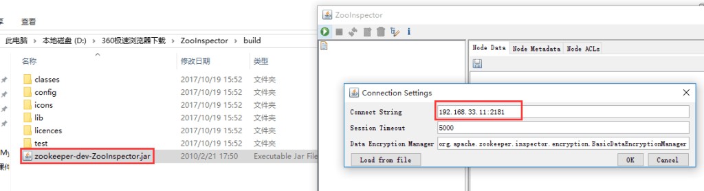 使用ZooInspector工具管理ZooKeeper,以下是连接zookeeper方法。